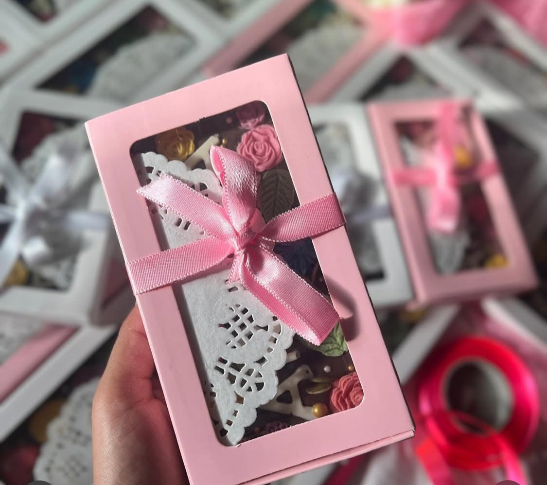 This compact and stylish box is specially designed to hold a single chocolate bar, protein bar, or dessert slice. Its sleek design makes it an ideal choice for both personal and professional gifting.