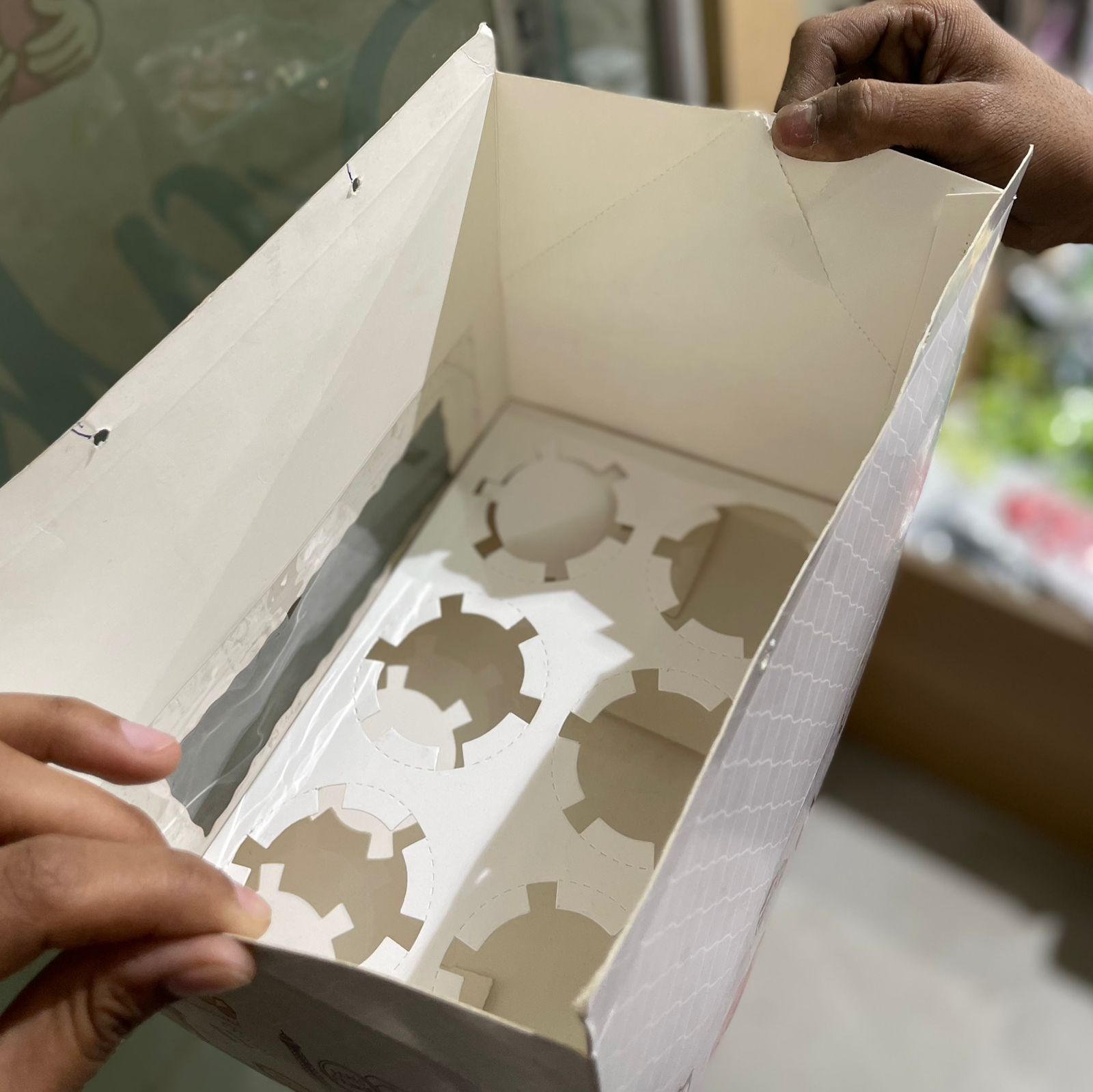 This 6 Cupcake Hut Box is a stylish and sturdy packaging solution designed to present cupcakes beautifully while keeping them safe. The elegant hut-style top with a transparent window enhances product visibility and makes it perfect for gifting and display.