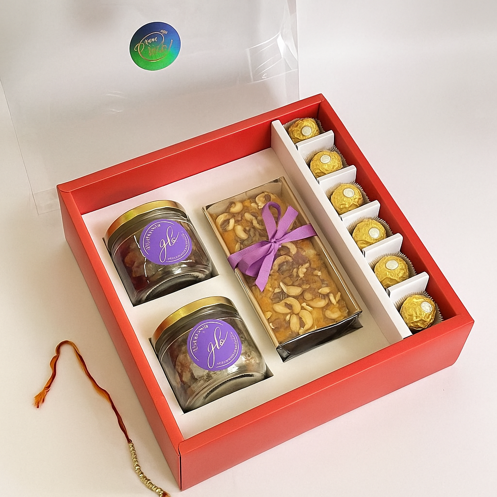 Box Hamper – Dry Cake + 2 Jars + 6 Chocolates