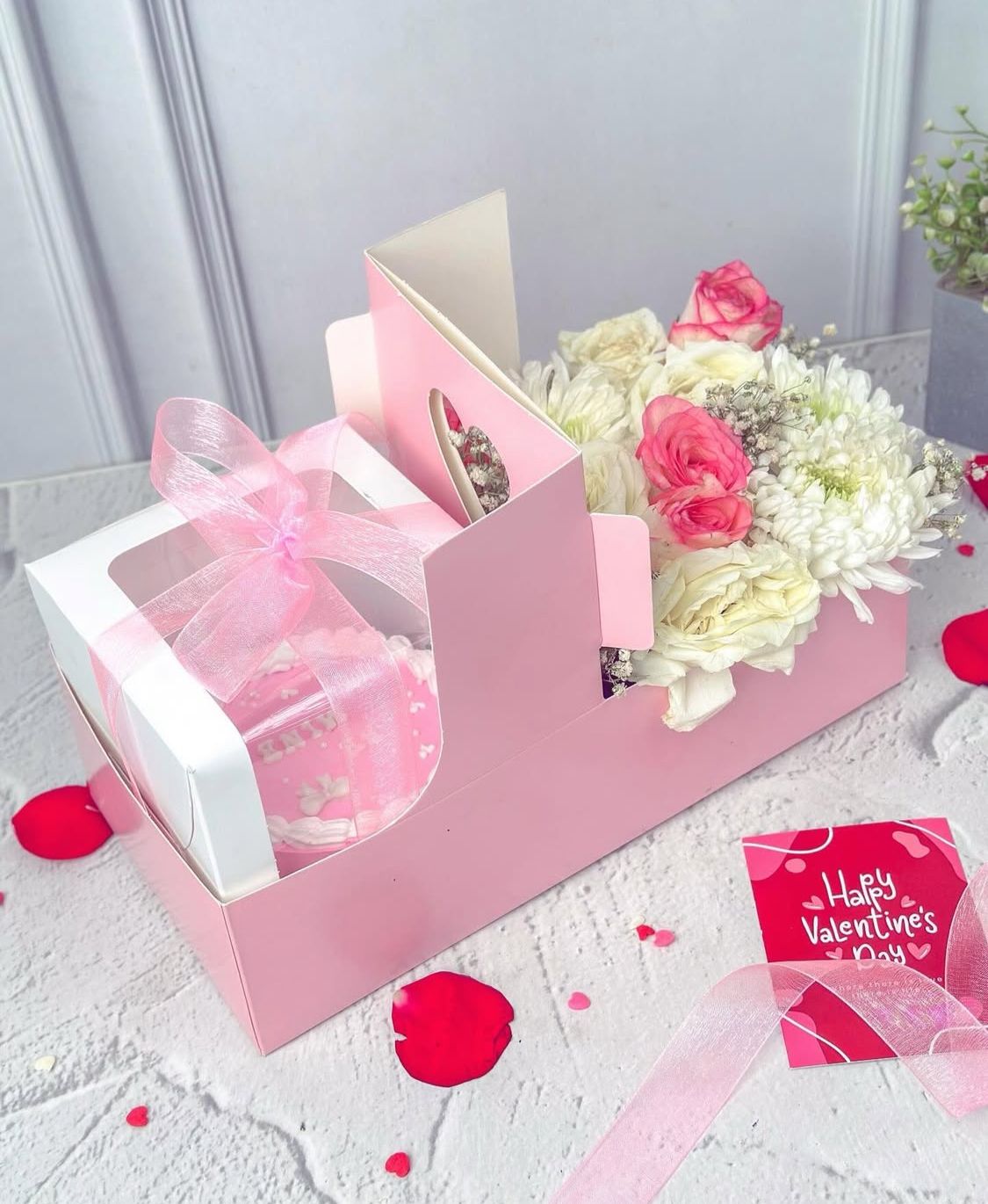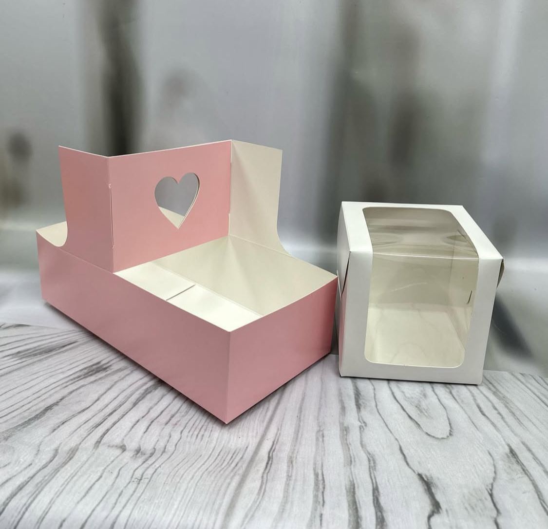 This elegant Heart Window Bento Box Hamper is perfect for gifting, especially for special occasions like birthdays, anniversaries, or intimate celebrations. Designed with a soft pastel finish and a beautiful heart-shaped cut-out on the partition, this box adds a personal, heartfelt touch to your packaging.