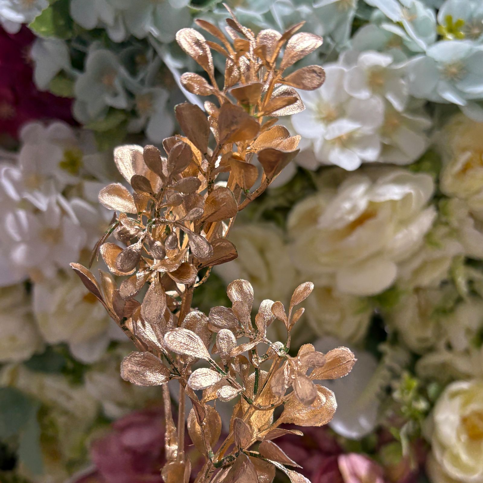 Colour- Golden, Material- Plastic & Steel Can be Bent Easily, Quantity – 7-8 stick in 1bunch, Usage – leaves and stem are fixed together quite strong