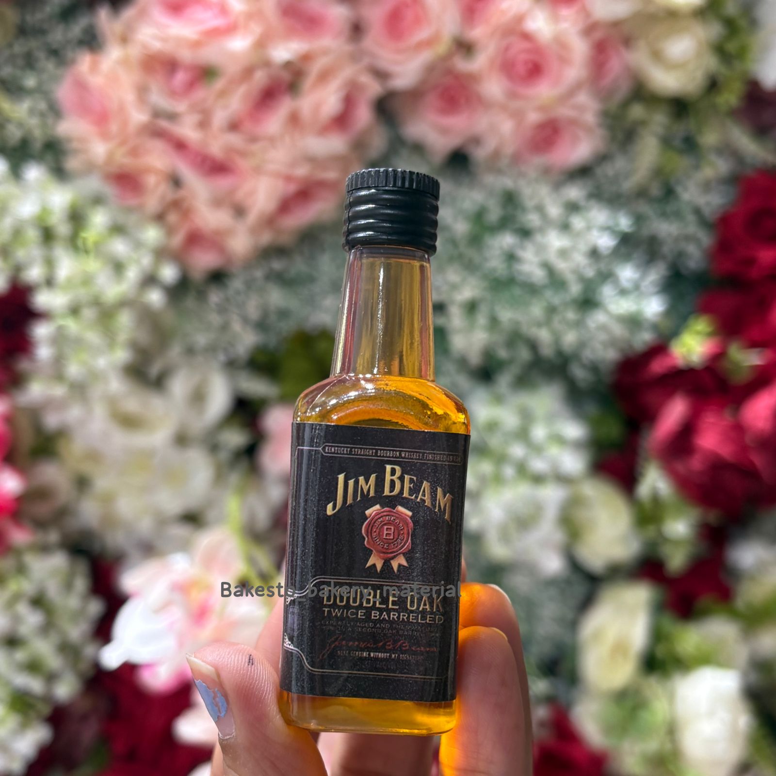 Miniature Jim Beam Bottle Prop – A stylish mini bottle designed to replicate the classic Jim Beam look. Perfect as a decorative accessory, this lightweight and durable prop adds a trendy, premium feel to hampers, trousseau packing, or cake decorations.