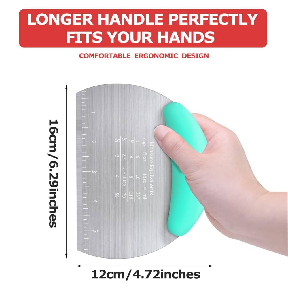 Cutting And Mixing Like Professionals: Our baking tools have a laser printed scale, and it is clear and healthy, with inch scale on the front and centimeter scale on the back, even a unit conversion,no longer need to worry about uneven cutting when you use our pastry cutter.