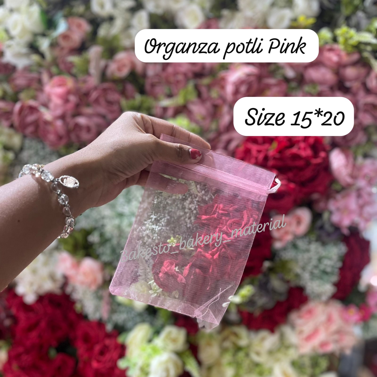 The Pottli Organza bag has an integrated ribbon drawstring tie that can be pulled to secure the contents inside. These are wonderful for all sorts of merchandise such as jewelry, candles or small gifts.Size:-15*20,Color:-Pink,Pack of-10